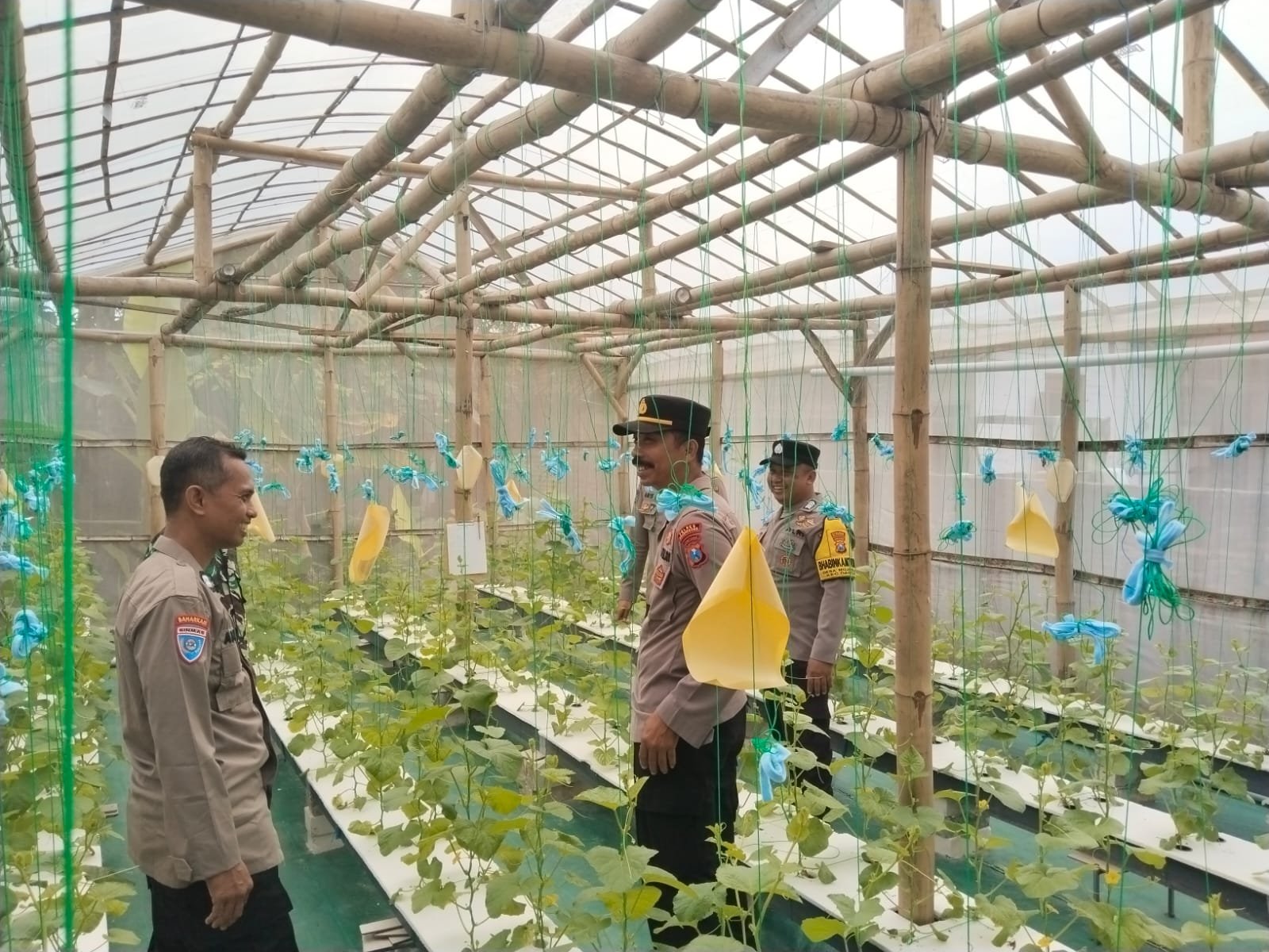 Pendampingan dilakukan pada lahan milik warga bernama Sujito dengan luas sekitar 10 x 40 meter yang saat ini dimanfaatkan untuk budidaya tanaman melon. Dalam kegiatan tersebut, Bhabinkamtibmas turut memantau kondisi lahan sekaligus memberikan dukungan kepada pemilik lahan agar proses budidaya tanaman dapat berjalan optimal.